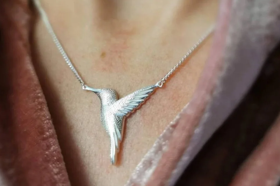 A Sterling Silver Hummingbird Necklace, with optional engraving on the back of the pendant.