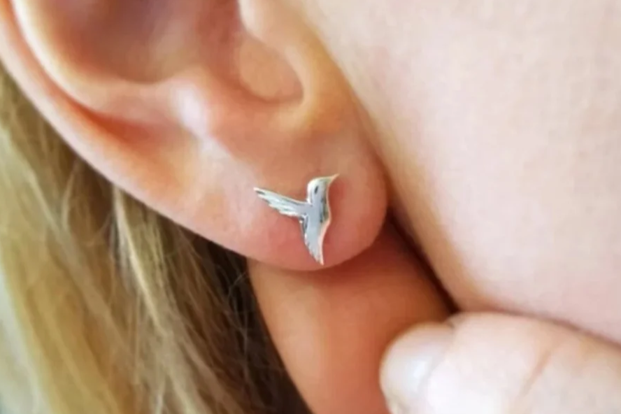 A pair of Tiny Hummingbird Ear Studs in Sterling Silver.